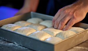 - Βουτάμε τα χέρια μας σε νερό και δίνουμε σχήμα σχηματίζοντας τα ψωμάκια.