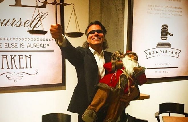 Ο δήμαρχος Μαραθώνα ανέβασε μία φωτογραφία στο λογαριασμό του στο Instagram, όπου είναι ο ίδιος με δεμένα τα μάτια κρατώντας στο ένα χέρι έναν ζυγό και στο άλλο έναν Άγιο Βασίλη.