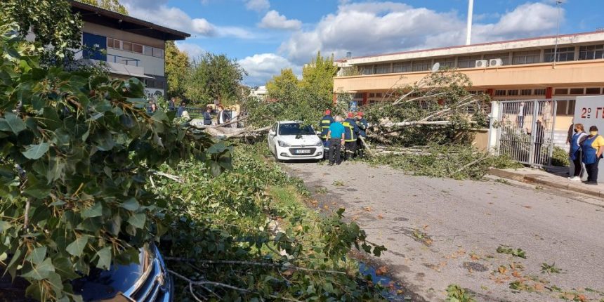 Πτώση δέντρου στο 2ο Λύκειο Τρικάλων. Ευτυχώς δεν υπήρξαν τραυματισμοί, αλλά την …πλήρωσαν τρία αυτοκίνητα ΦΩΤΟ