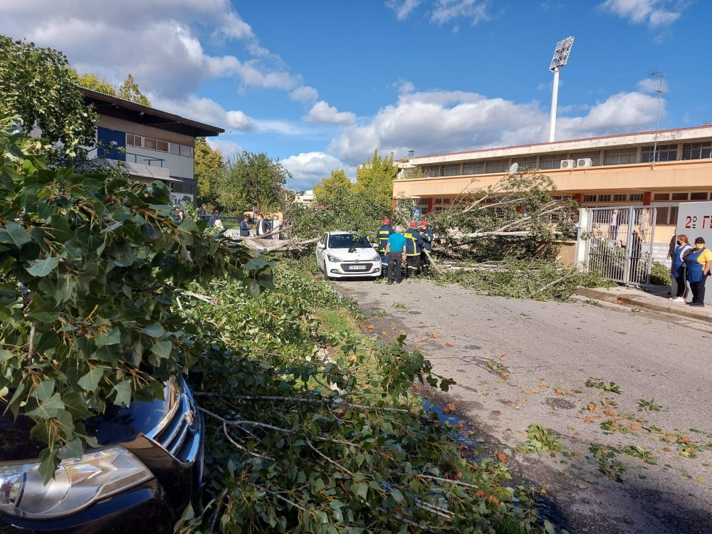 Οπως κατέγραψε το trikaladay, ένα τεράστιο δέντρο (λεύκα) ξεριζώθηκε με αποτέλεσμα να πέσει πάνω στα κάγκελα του σχολείου και να καταπλακώσει τρία σταθμευμένα αυτοκίνητα που ανήκουν σε εκπαιδευτικούς του σχολείου.