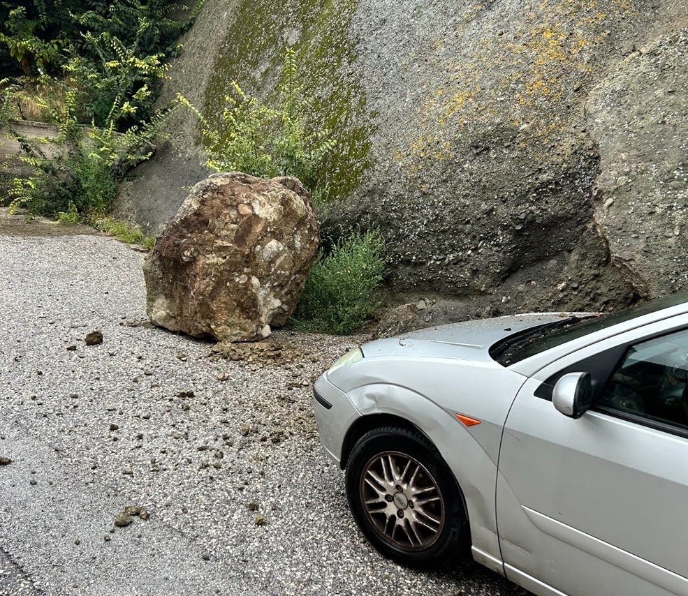 Την πτώση ενός βράχου πάνω σε ι.χ. αυτοκίνητο είχαμε σήμερα, πλησίον του 2ου Δημοτικού Σχολείου Καλαμπάκας.