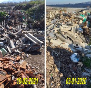 Στις 17-02-2021 εξοφλήθηκε από το Δήμο Πύλης τιμολόγιο αξίας 3348,00 ευρώ. Δυστυχώς, τα υλικά παραμένουν στο ίδιο σημείο και μάλιστα προστέθηκε επιπλέον αμίαντος όπως παρατηρούμε στις παρακάτω φωτογραφίες.