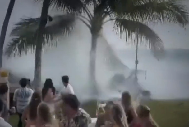 Έτσι όταν το τεράστιο κύμα βγήκε στην ακτή, όχι μόνο παρέσυρε τα πάντα, αλλά έκανε και τους καλεσμένους να τρέχουν να γλιτώσουν από την ορμή του.