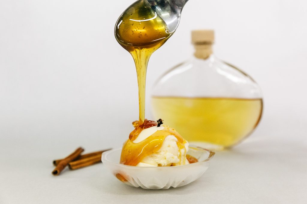 – Παράλληλα ρίχνουμε μέσα και το μέλι (σ.σ. προαιρετικά το έχουμε ζεστάνει και αυτό, αλλά προσοχή χωρίς να βράσει).