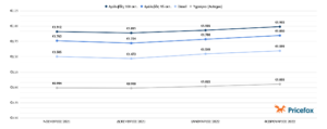 Συνεχίζεται το Ράλι τιμών με τις στην απλή αμόλυβδη να φτάνει από 1,763€/λίτρο στο 1,850€/λίτρο ενώ παράλληλα η ενισχυμένη βενζίνη άγγιξε σχεδόν τα 2€/λίτρο μέσα στον Φεβρουάριο. Η μέση τιμή για τους οδηγούς πετρελαιοκίνητων αγγίζει το 1,599€/λίτρο από 1,505€/λίτρο που ήταν το Νοέμβριο. Η μεγαλύτερη έκπληξη είναι οι τιμές του υγραερίου που φτάνουν το 1,055€/λίτρο ενώ τέσσερις μήνες πριν η μέση τιμή ήταν στο 0,994€/λίτρο.