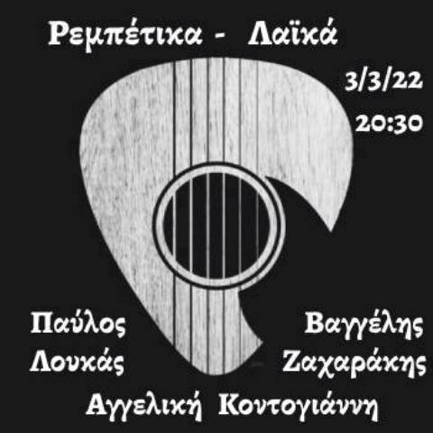 Την Πέμπτη 03/03/2022 ρεμπέτικη – λαϊκή μουσική με τον Παύλο Λουκά , Βαγγέλη Ζαχαράκη & την Αγγελική Κοντογιάννη !