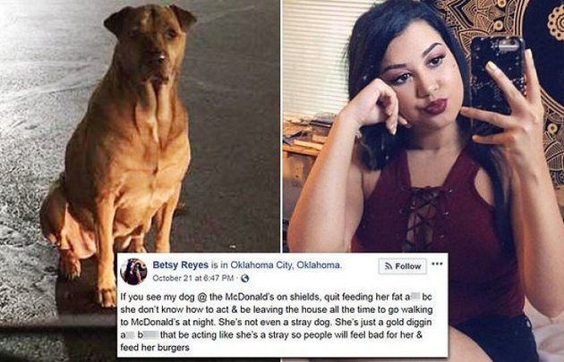 Μια σκυλίτσα από την Οκλαχόμα έφαγε για πρώτη φορά burger στη ζωή της. Από τότε, «το σκάει» τα βράδια από το σπίτι της και παριστάνει το αδέσποτο έξω από το κοντινότερο κατάστημα McDonald’s , για να φάει-και μάλιστα τζάμπα-μερικές μερίδες ακόμα. Η ιδιοκτήτριά της έφτασε στο σημείο να την αναρτήσει στο Facebook και να γράψει απελπισμένη ότι «Μην τη ταίζετε άλλο. Δεν είναι αδέσποτη». Τόσο πολύ εθίστηκε η μικρή.