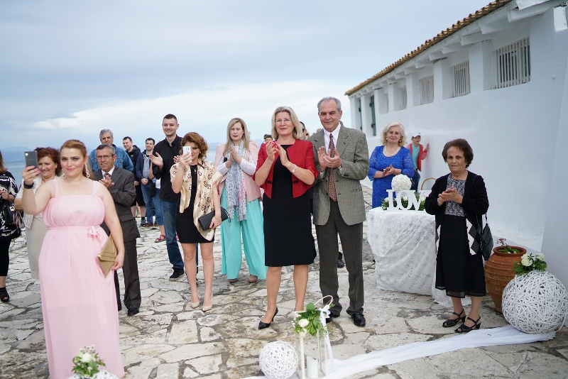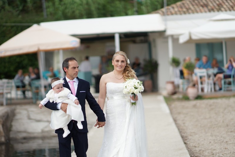 Διάλεξαν για την τέλεση του μυστηρίου την πανέμορφη εκκλησία της Παναγίας των Βλαχερνών στο Ποντικονήσι και η δεξίωση έγινε στον Ανεμόμυλο Cafe Restaurant στον όρμο της Γαριτσας.