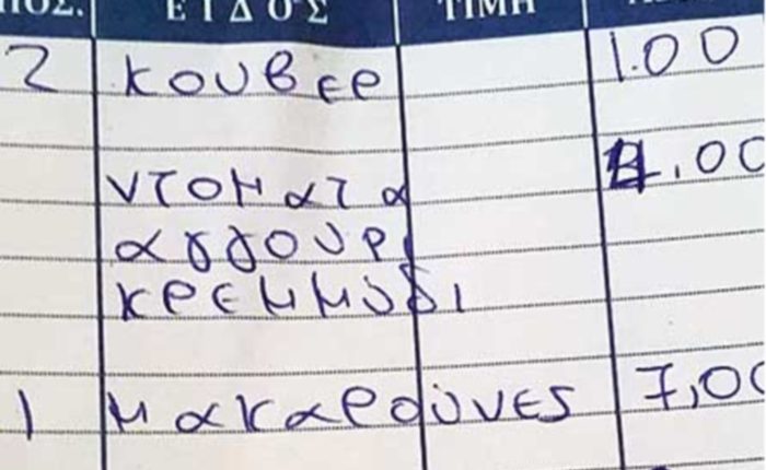 Σάλος έχει προκληθεί από φωτογραφία «απόδειξης» σε ταβέρνα της Καρπάθου που κάνει το γύρο του διαδικτύου τις τελευταίες μέρες. Στο πάνω μέρος της παραγγελίας αναγραφόταν ότι οι πελάτες ήταν… Έλληνες!