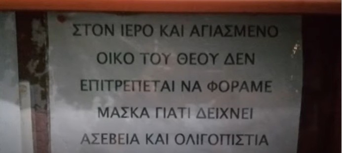 Μήνυμα που τους προτρέπει να μην φορούν μάσκες βλέπουν μέχρι και σήμερα οι πιστοί στην είσοδο εκκλησίας της Φλώρινας. Ο πατέρας Αναστάσιος υποστήριξε ότι οι μάσκες προστασίας δείχνουν ασέβεια και ολιγοπιστία και ως εκ τούτου δεν επιτρέπονται στο ναό. Η άμεση αντίδραση του μητροπολίτη, το ξέσπασμα της πρεσβυτέρας μπροστά στην κάμερα του Live News και ο απόηχος στην τοπική κοινωνία, δίνουν τροφή για σχόλια κι συζητήσεις.