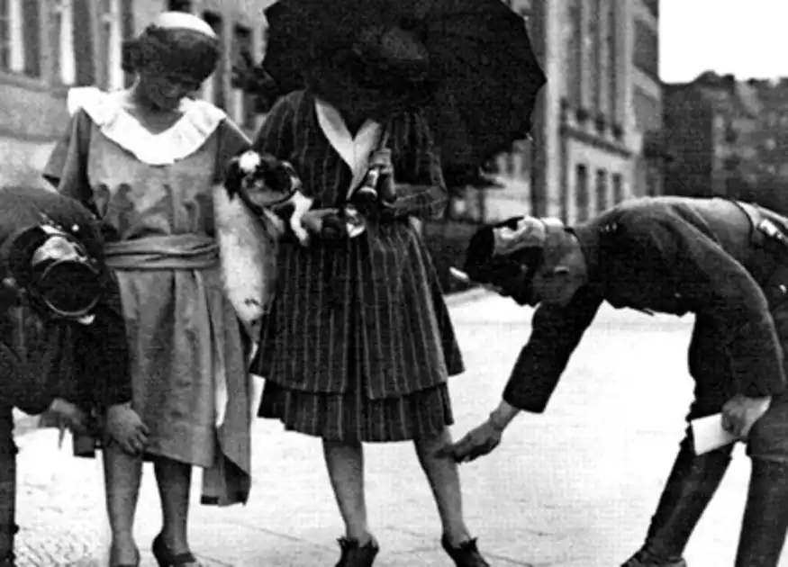 Η διάταξη όριζε τους 30 πόντους από το έδαφος ως επιτρεπτό όριο για να μην επιδεικνύεται γυμνή ολόκληρη η γάμπα! Η παρανομούσα γυνή που θα έπεφτε στην προσοχή των οργάνων της τάξης (να σημειώσουμε πως ήταν εφοδιασμένα με μεζούρα για να μετρούν την απόσταση φούστας – εδάφους!) οδηγείτο στο δικαστήριο για τα περαιτέρω…