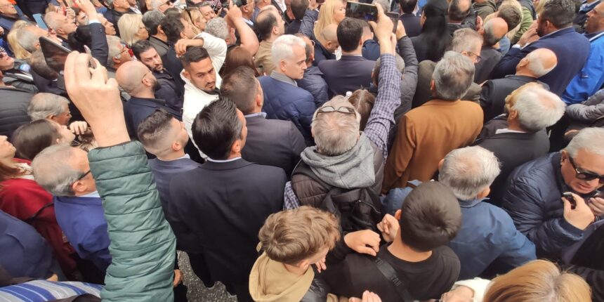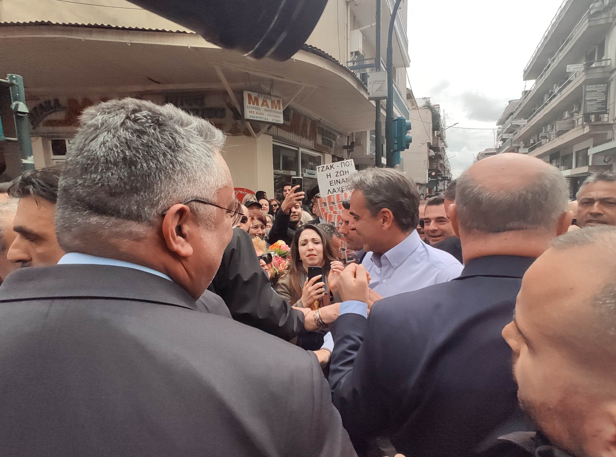 Παρόντες σε όλη του τη διαδρομή, οι υποψήφιοι βουλευτές, στελέχη και μέλη της Ν.Δ οι οποίοι τον καταχειροκρότησαν.