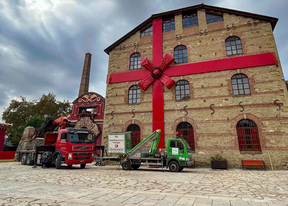 Οι εργασίες προετοιμασίας του Μύλου των Ξωτικών στα Τρίκαλα συνεχίζονται και πλέον τα κομμάτια του πιο παραμυθένιου παζλ, μπαίνουν στη σειρά. Η περίφημη και χαρακτηριστική κορδέλα του κεντρικού κτιρίου είναι εδώ και λίγες ώρες στη θέση της και δίνει το σήμα για την έναρξη της φετινής χριστουγεννιάτικης περιόδου.