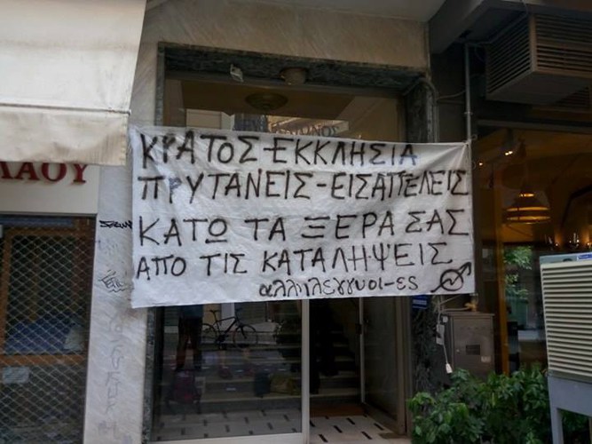 Μια ομάδα 20 περίπου νεαρών,στις 9 το βράδυ, μπήκε αιφνιδιαστικά στα γραφεία του κόμματος που βρίσκονται στη διασταύρωση των οδών Μεγ. Αλεξάνδρου – Πατρόκλου – Δευκαλίωνος. Οι αντιεξουσιαστές δήλωσαν ότι κάνουν κατάληψη του χώρου , σε ένδειξη συμπαράστασης στους 70 περίπου συλληφθέντες της Θεσσαλονίκης, μετά από επιχείρηση εκκένωσης 3 κατειλημμένων κτιρίων στη συμπρωτεύουσα από ομοιδεάτες τους.Εκείνη την ώρα στο χώρο, νεολαίοι του ΣΥΡΙΖΑ συνεδρίαζαν. Αμέσως αποχώρησαν από τον χώρο και οι αντιεξουσιαστές προχώρησαν στην κατάληψη.