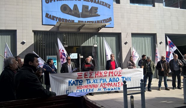 Η φωτό είναι από την πρόσφατη κινητοποίηση της ΠΑΣΕΒΕ στον ΟΑΕΕ Τρικάλων
