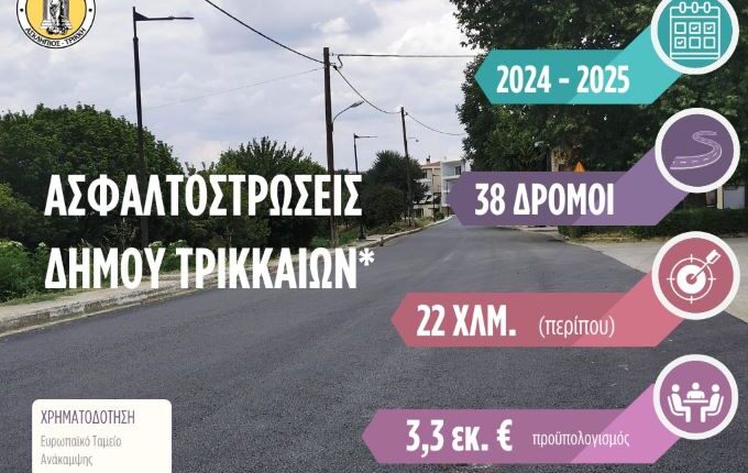 ασφαλτόστρωση ο Δήμος Τρικκαίων τη διετία 2024-2025.