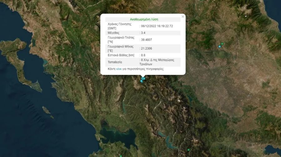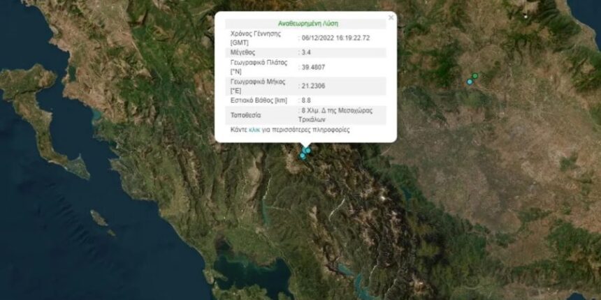 Συγκεκριμένα, η σεισμική δόνηση έγινε στις 18:19 το απόγευμα (6/12), οκτώ χιλιόμετρα δυτικά της Μεσοχώρας Τρικάλων.