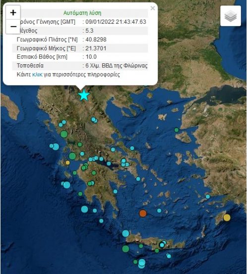 Ο σεισμός σημειώθηκε στις 23.43 και είχε ένταση 5,4 Ρίχτερ με επίκεντρο 3χλμ δυτικά της Φλώρινας.