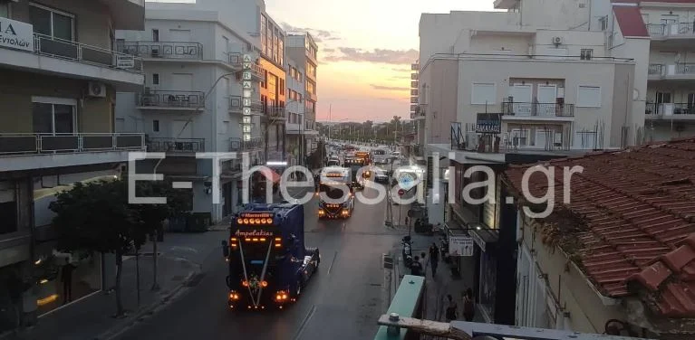 Σύμφωνα με το e-thessalia.gr, περισσότερες από 15 νταλίκες, στολισμένες, πέρασαν από το κέντρο του Βόλου με τους οδηγούς να πατούν ασταμάτητα τις κόρνες.