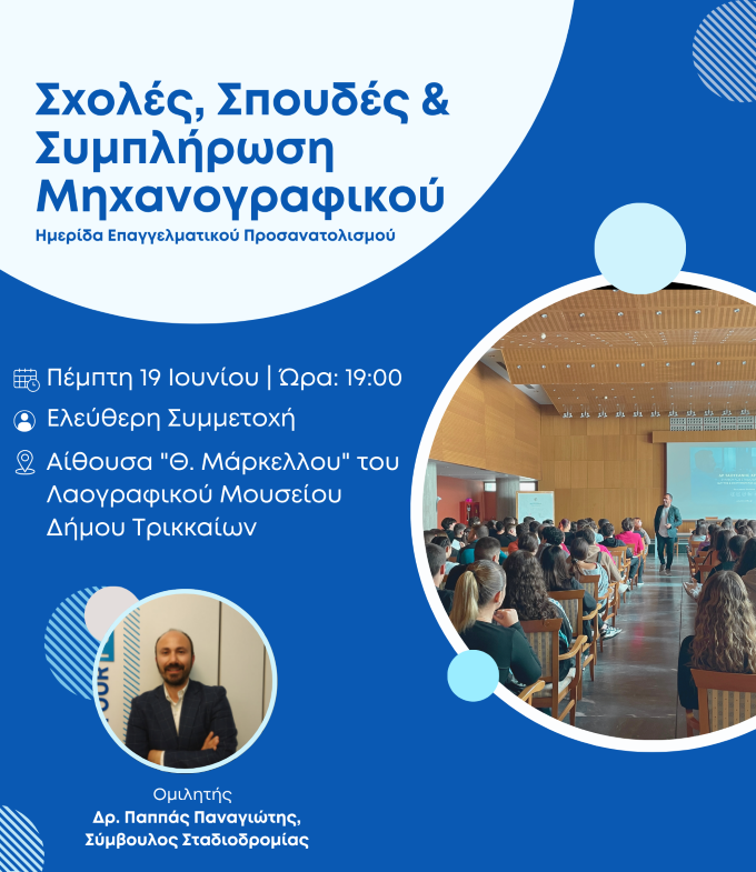 Το σεμινάριο θα πραγματοποιηθεί την Πέμπτη 19 Ιουνίου 2025 στις 19:00 στην αίθουσα