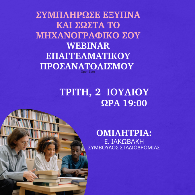 Σεμινάριο σωστής συμπλήρωσης του Μηχανογραφικού 2024, για τους τελειόφοιτους  της Γ’ Λυκείου με θέμα: