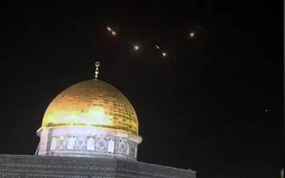 Οι συγκλονιστικές εικόνες με την αναχαίτιση πυραύλων πάνω από τα Ιεροσόλυμα, ιερό τόπο τριών θρησκειών, κάνουν τον γύρο του διαδικτύου.