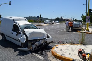 Αντιθέτως οι επιβαίνοντες στο Ι.Χ επιβατικό, ένα ζευγάρι, δεν έπαθαν το παραμικρό
