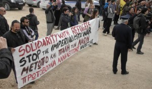 Συγκέντρωση αλληλεγγύης πραγματοποιείται το πρωί της Κυριακής στον προσφυγικό καταυλισμό του Κουτσόχερου όπου πλήθος αλληλέγγυων ζητούν να σταματήσουν οι πολεμικές επιχειρήσεις και να ανοίξουν τα σύνορα.