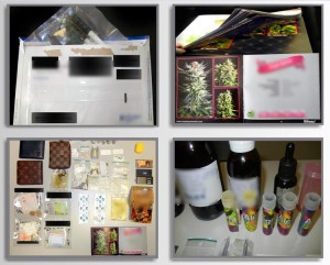 Επιπλέον, όπως προέκυψε από την συνεχιζόμενη αστυνομική έρευνα πρωινές ώρες χθες ο 43χρονος απέστειλε σε ημεδαπή στην περιοχή των Χανίων, μέσω εταιρείας ταχυμεταφορών, ένα φάκελο που περιείχε δύο σύριγγες με χασισέλαιο, δύο χάρτινες συσκευασίες με (125) γραμμάρια πράσινης σκόνης αγνώστου χημικής συνθέσεως, καθώς και μία συσκευασία με φυτικά αποσπάσματα αγνώστου προελεύσεως.