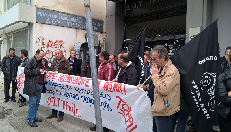 Τη ΔΟΥ Τρικάλων αποκλείσαμε σήμερα αγροτοκτηνοτρόφοι των Τρικάλων, υλοποιώντας τις αποφάσεις για αγωνιστική κλιμάκωση που πάρθηκαν στις συνεδριάσεις της συντονιστικής επιτροπής των Τρικαλινών αγροτών στο μπλόκο της Νίκαιας και στη συνέχεια στη συνεδρίαση της Συντονιστικής Επιτροπής του Μπλόκου Νίκαιας, όπου η Ομοσπονδία μας «Η Άνοιξη» συμμετέχει ανελλιπώς..