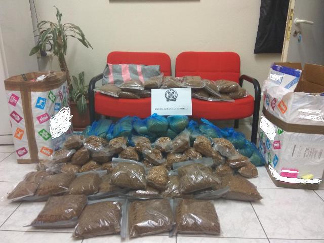 Ειδικότερα, σε έρευνα που διενεργήθηκε σε Ι.Χ. επιβατικό αυτοκίνητο, ιδιοκτησίας του, καθώς και σε αποθήκη οικίας του, βρέθηκαν και κατασχέθηκαν συνολικά (92) νάιλον συσκευασίες που περιείχαν κατεργασμένο (χύμα) καπνό συνολικού βάρους (47.203) γραμμαρίων, χωρίς την ειδική ένσημη ταινίας φορολόγησης.