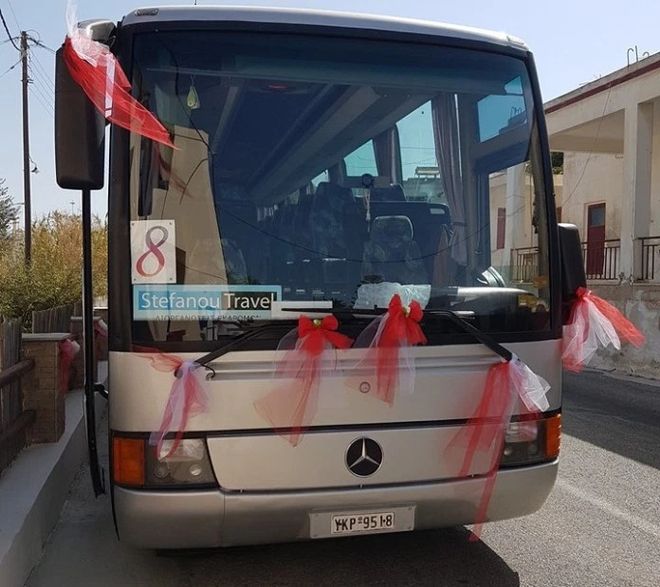Ούτε Mercendes, ούτε Porse, αλλά με Λεωφορείο τουριστικού Πρακτορείου, επέλεξε ο γαμπρός για να μεταβεί στην εκκλησία και να παντρευτεί την αγαπημένο του. Και κάπως έτσι, ο Φραγκίσκος και η Κατερίνα, έκαναν τη διαφορά.