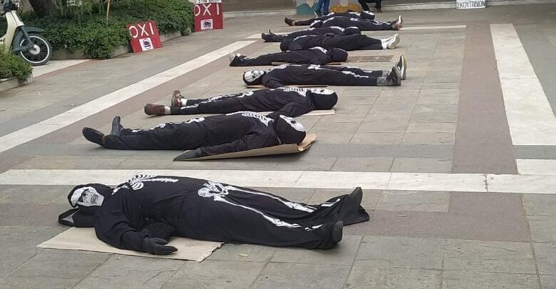 Τη συμβολική διαμαρτυρία με πανό, πλακάτ και μαύρες στολές, διοργάνωσε η επιτροπή αγώνα πολιτών κατά της καύσης σκουπιδιών του Βόλου.
