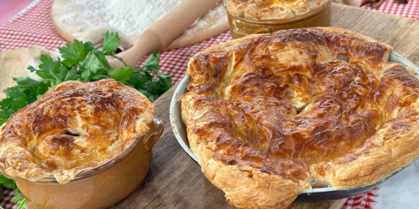 Σκεπαστή με χοιρινο και σφολιάτα