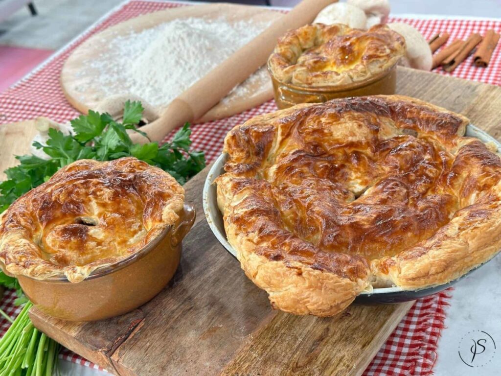 Σκεπαστή με χοιρινο και σφολιάτα