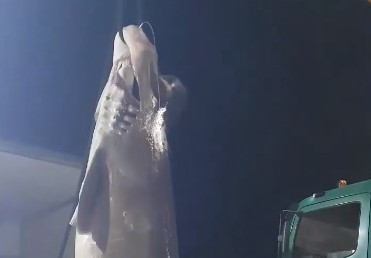 Γαλέο μήκους 6 μέτρων και βάρους 500 κιλών περιπου, «έπιασαν» δύο ψαράδες στη Σκόπελο, ανοιχτά στο πέλαγος, στην περιοχή του Αγίου Ορους.