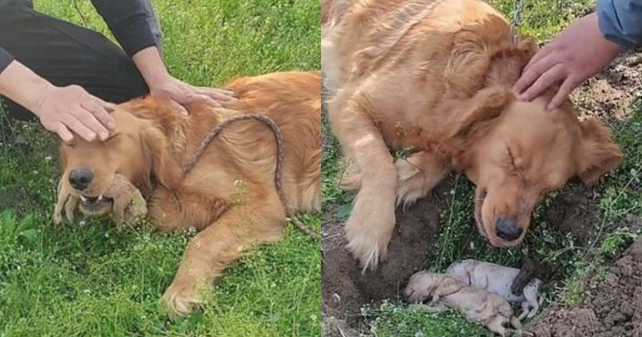 Όπως αποκαλύπτει το αφεντικό της κ. Κιν, η σκυλίτσα έσκαψε έναν ρηχό λάκκο στο έδαφος και τοποθέτησε τα μωρά της μέσα σε αυτόν. Δεν έφυγε όμως στιγμή από δίπλα τους, καθώς φανερά λυπημένη έκλαιγε και έγλειφε τα νεκρά σώματα τους.