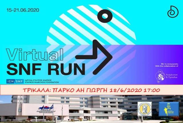 Στα Τρίκαλα ο Δήμος Τρικκαίων συνεργάστηκε με τον Σύλλογο Δρομέων Τρικάλων, κατόπιν της σχετικής πρόσκλησης του Ιδρύματος Σταύρος Νιάρχος. Ετσι την ερχόμενη Πέμπτη 18 Ιουνίου 2020 από τις 5 έως τις 8 το απόγευμα, με αφετηρία το πάρκο του Αη Γιώργη, όσοι/εςτρικαλινοί και τρικαλινές το επιθυμούν, μπορούν να μετάσχουν στο SNF Run για απόσταση 5 χλμ., τηρώντας βεβαίως τα απαραίτητα μέτρα προστασίας και ασφάλειας.