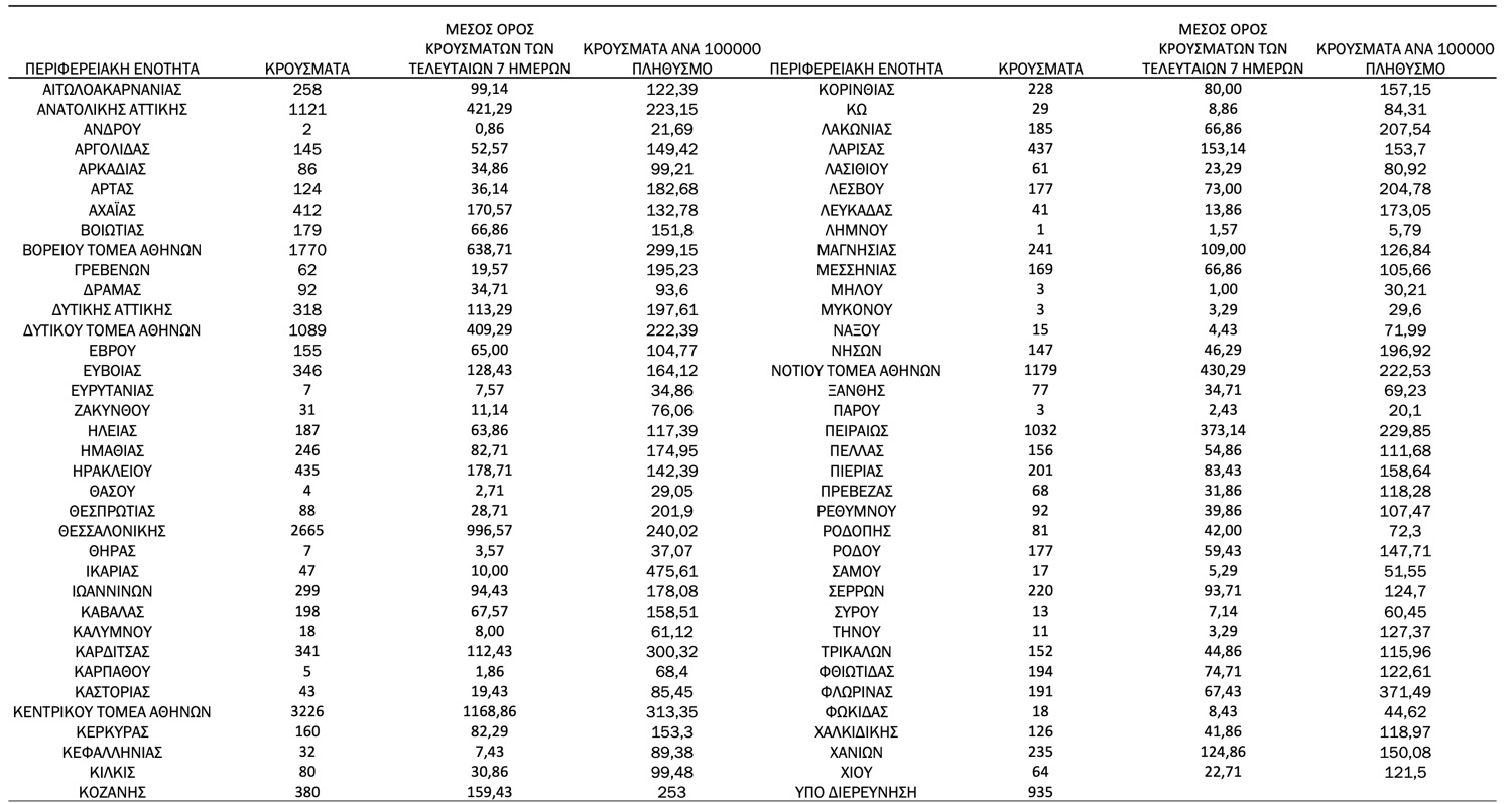Αναλυτικά η κατανομή των κρουσμάτων