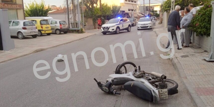 Ο νεαρός ντελιβεράς κινείτο με κατεύθυνση προς Δύο Δέντρα. Στο ύψος του super market “Proton”, έχασε τον έλεγχο του δικύκλου, εξετράπη δεξιά και χτύπησε πάνω σε κάδο.