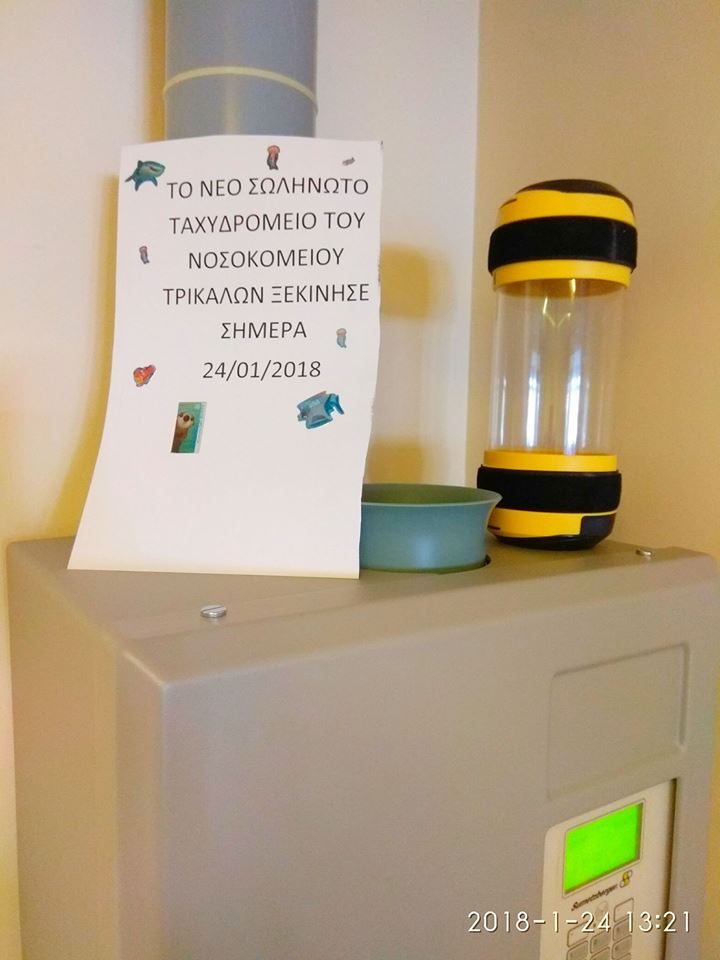 Μέχρι σήμερα το Γ.Ν.Τρικάλων είχε Σωληνωτό Ταχυδρομείο μόνο στο Τμήμα των Επειγόντων Περιστατικών. Πρόκειται για έναν γρήγορο τρόπο μεταφοράς αντικειμένων με σύστημα αέρα μέσα σε κάψουλες και βολίδες μέσω δικτύων και σωληνώσεων.