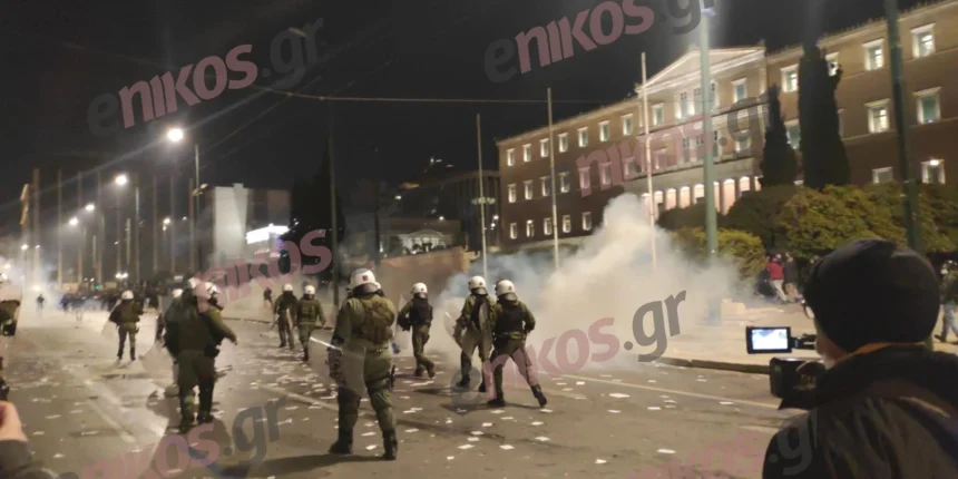 Εκτεταμένα επεισόδια σημειώθηκαν νωρίτερα στην πλατεία Συντάγματος και έξω από την Βουλή, μετά το συλλαλητήριο για τα Τέμπη.