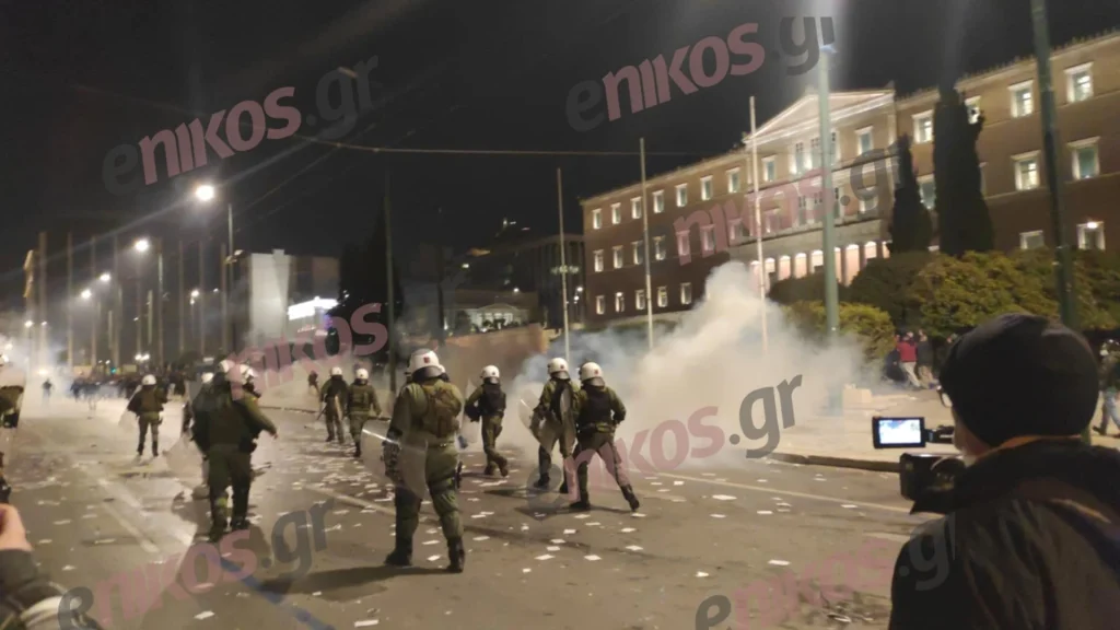 Εκτεταμένα επεισόδια σημειώθηκαν νωρίτερα στην πλατεία Συντάγματος και έξω από την Βουλή, μετά το συλλαλητήριο για τα Τέμπη.