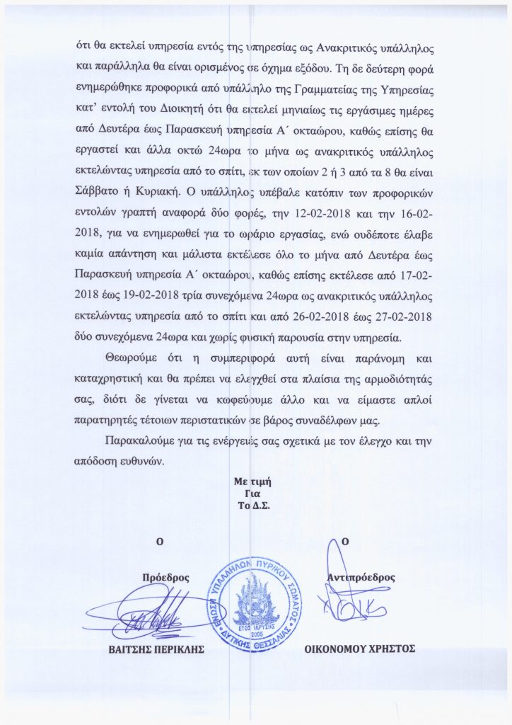 trikaladay.gr / Άρθρα / Σοβαρή καταγγελία συνδικαλιστών κατά διοικητή Πυροσβεστικής Υπηρεσίας του νομού Τρικάλων