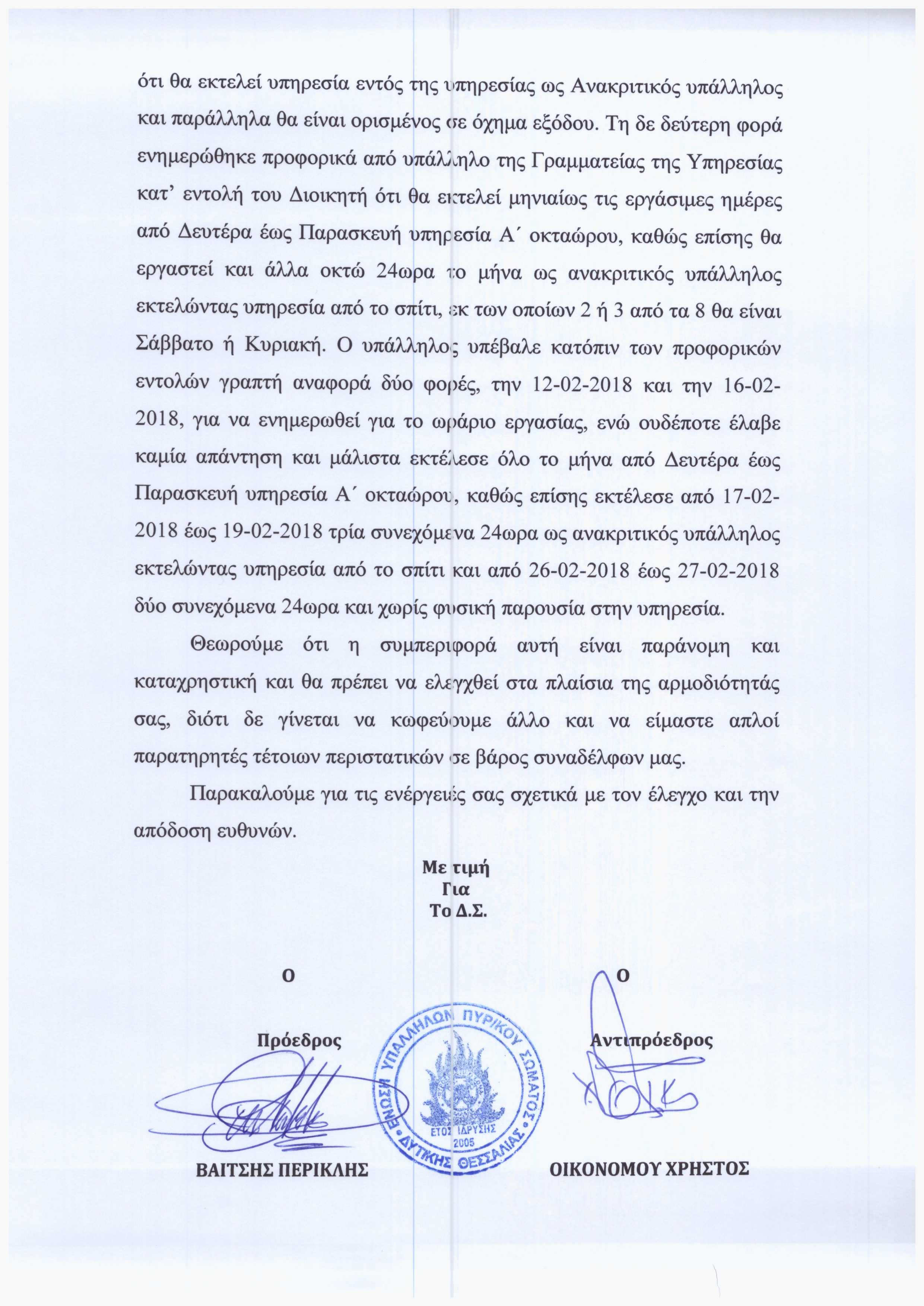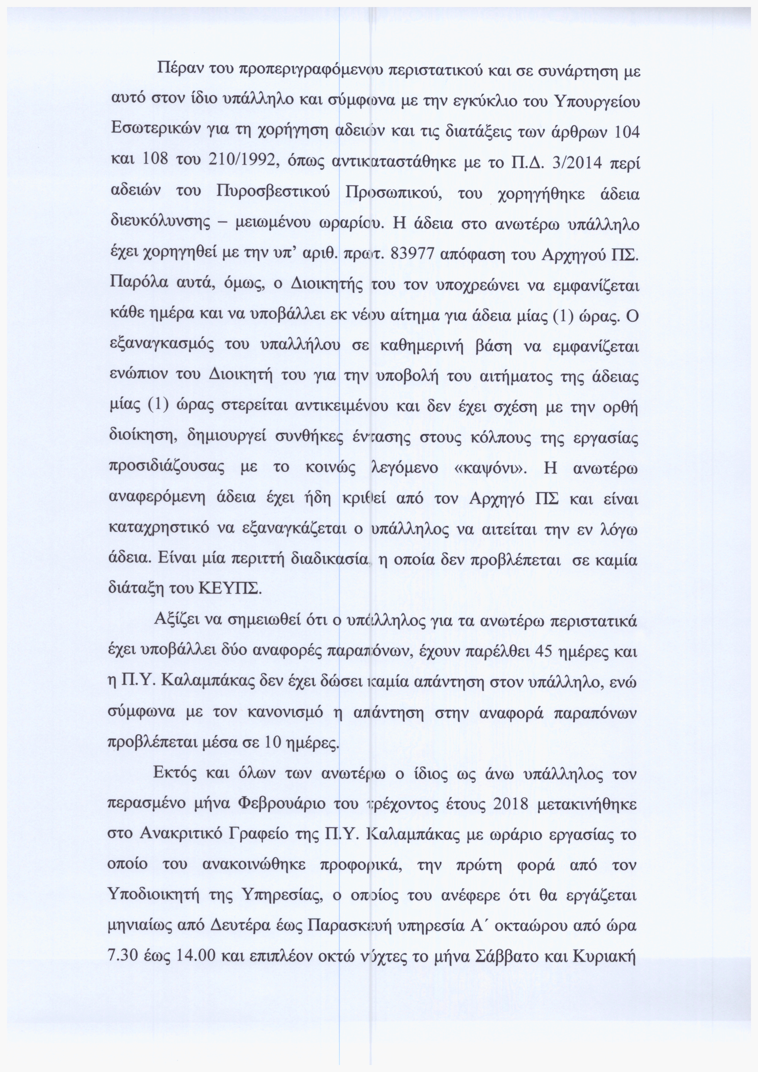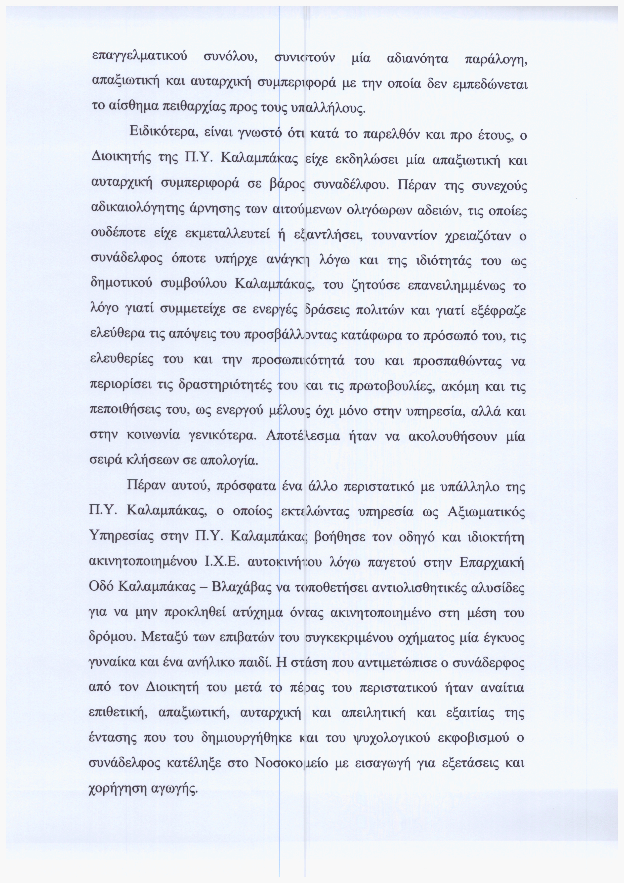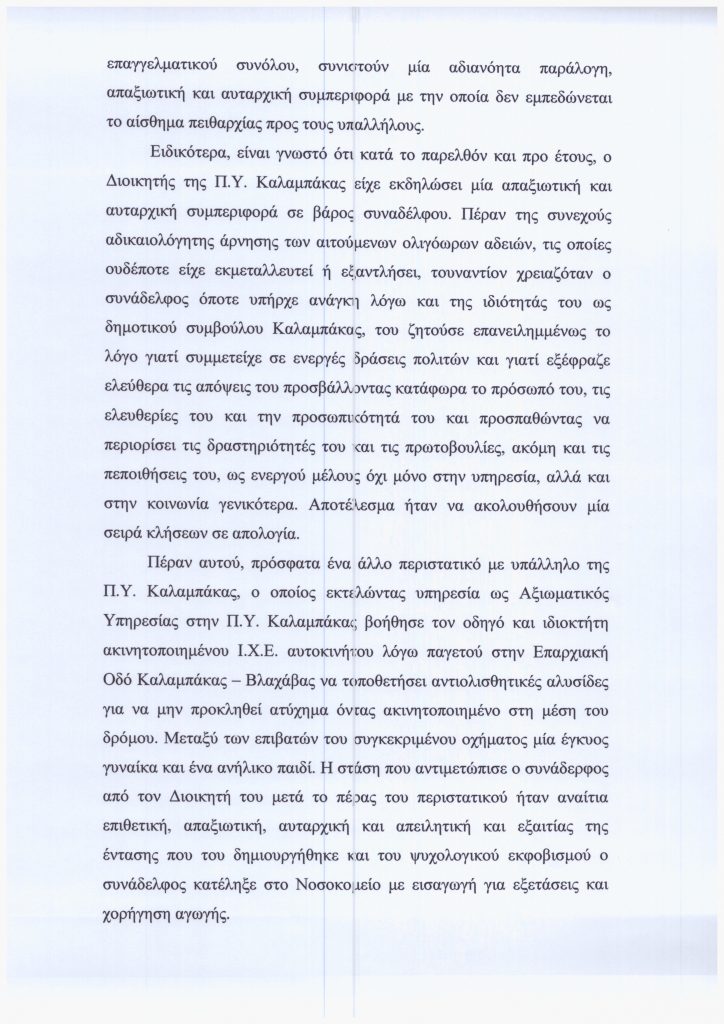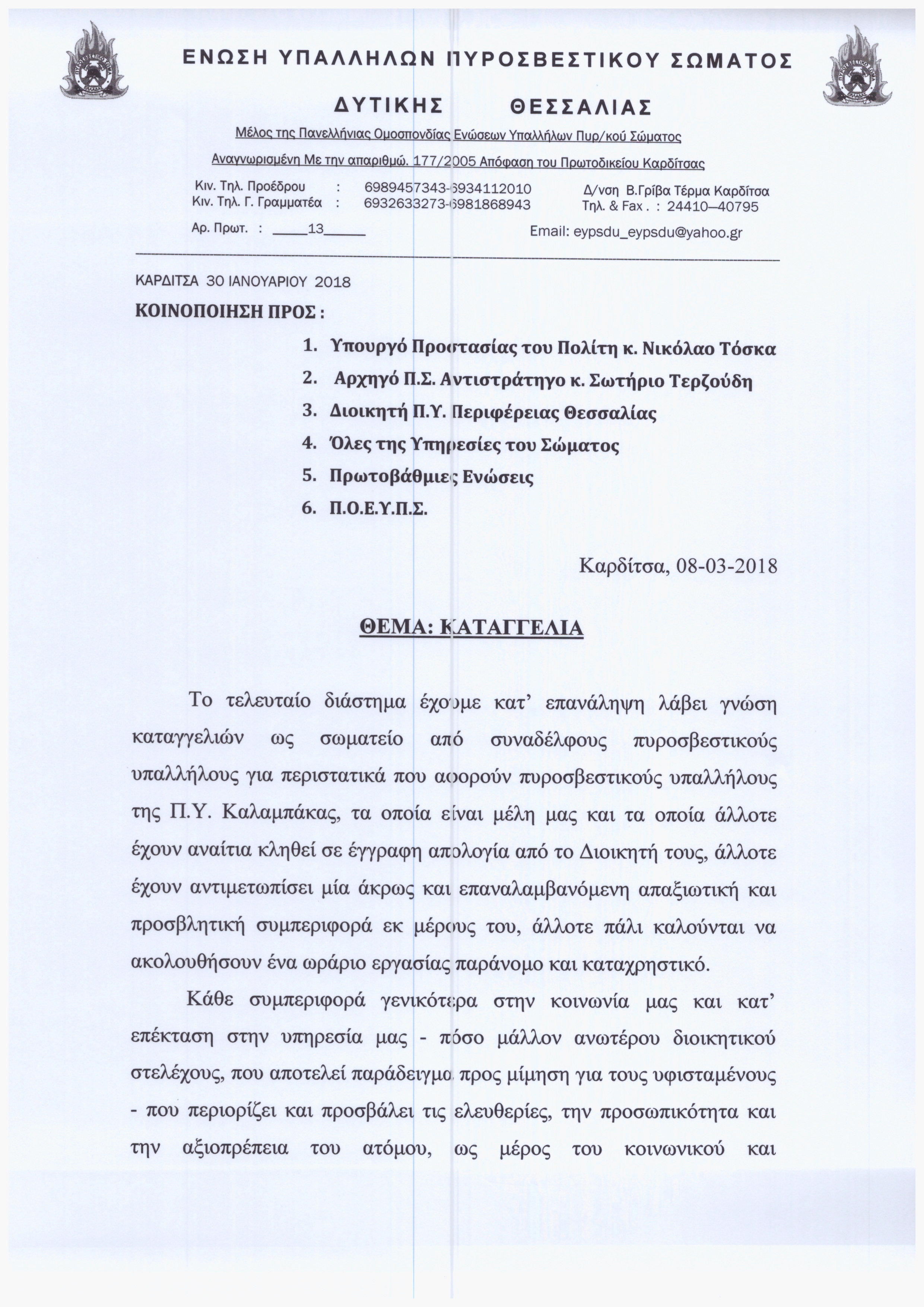 Η καταγγελία αφορά τον διοικητή της Π.Υ Καλαμπάκας κ. Τσουρλίδα.