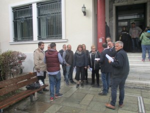 Συγκέντρωση διαμαρτυρίας μπροστά στην Τράπεζα Πειραιώς στον πεζόδρομο της Ασκληπιού πραγματοποίησαν σήμερα το πρωί οι Τρικαλινοί ασφαλιστές.