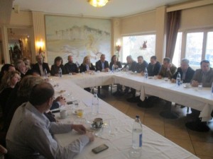 Ακολούθως η πρόεδρος του ΠΑΣΟΚ συναντήθηκε στο ξενοδοχείο «Αχίλλειο» με τους εκπροσώπους των παραγωγικών φορέων και προήδρευσε στη διευρυμένη συνεδρίαση της Ν.Ε του ΠΑΣΑΚ.