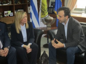 Η κ. Γεννηματά αρχικά συναντήθηκε με τον δήμαρχο Τρικάλων Δημ. Παπαστεργίου ο οποίος την ενημέρωσε για μια σειρά θεμάτων του Δήμου, όπως . τα δύο αναπτυξιακά έργα του Δήμου: το σχέδιο Ασκληπιός, για την ανάδειξη –παρουσίαση – αξιοποίηση της πανάρχαιας ιατρικής που στηρίζεται στα βότανα και τα φυτά. Και τα ιαματικά λουτρά στο Ρίζωμα, με τη μεγαλύτερη συγκέντρωση υδρόθειου στη χώρα.