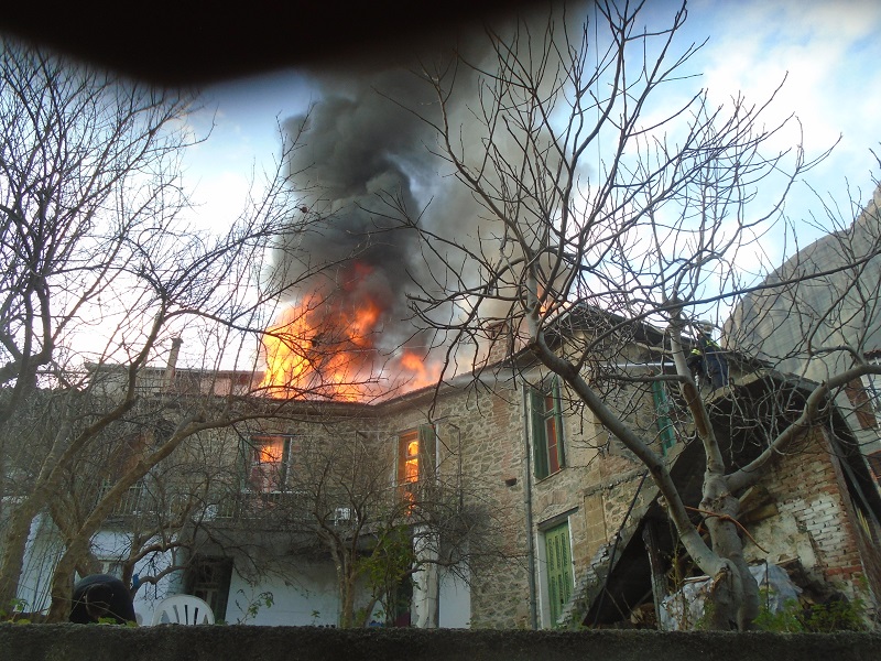 Κάτω από αδιευκρίνιστες με΄χρι στιγμής συνθήκες στο παλιό πέτρινο σπίτι που βρίσκεται δίπλα από την Πολεοδομία του Δήμου Καλαμπάκας εκδηλώθηκε πυρκαγιά η οποία ταχύτατα πήρε διαστάσεις από την κεραμοσκεπή και οι φλόγες κατέστρεψαν τα πάντα στο πε΄ρασμά τους.
