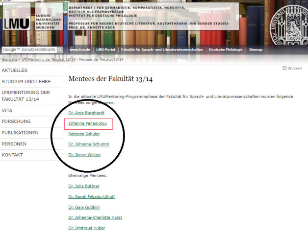 Το εν λόγω πρόγραμμα ενδυνάμωσης και προώθησης με τον τίτλο „Mentoring für Nachwuchsforscherinnen der Exzellenzinitiative“ (Καθοδήγηση νεαρών ερευνητριών με εξαιρετική επίδοση) λειτουργεί εδώ και χρόνια. Δικαίωμα συμμετοχής είχαν όμως έως τώρα Καθηγήτριες ούσες στις πρώτες βαθμίδες καθώς και μεταδιδακτορικές ερευνήτριες στη δίκαιη διαδικασία ανόδου στην ακαδημαϊκή ιεραρχία, στην κορυφή της οποίας βρίσκονται κατά 80% μόνο άνδρες. Απλώς φέτος – για πρώτη φορά – το Πανεπιστήμιο αποφάσισε να κάνει δεκτές και τις αιτήσεις υποψήφιων διδακτορικών με την «Ιωάννα μας», όπως έχει καθιερωθεί στους κόλπους της ελληνικής παροικίας του Μονάχου, να „κάνει ποδαρικό“ ως μοναδική υποψήφια διδάκτορας από το τμήμα Αμερικανικών και Διατλαντικών Σπουδών. Το Γραφείο Τύπου του Πανεπιστημίου έκανε ένα μεγάλο αφιέρωμα για τη μεγάλη αυτή επιτυχία. Το άρθρο, αναφερόμενο στις δέκα περίπου νεοεισαχθείσες γυναίκες των Φιλολογικών Σχολών, αρχίζει και τελειώνει με αναφορά μονάχα στην Ελληνίδα ακαδημαϊκό και τη δημοσίευση σχετικής φωτογραφίας.